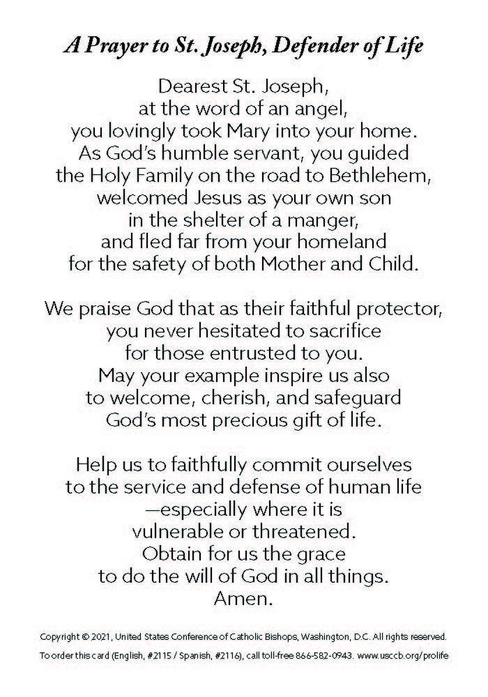 The Catholic Church proclaims that human life is a precious gift from God that must be respected and protected at every stage of its existence - from conception to natural death. Our committee seeks to spread this Gospel of Life to fellow parishioners and members of the community.